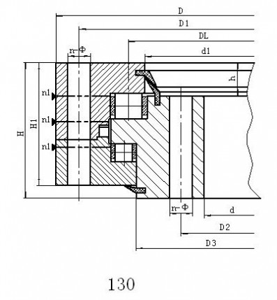 三排滚柱式回转支承(13系列)——无齿式 结构特点、性能、适用范围 三排滚柱式回转支承有三个座圈,上下及径向滚道各自分开,使得每一排滚 柱的负载都能确切地加以确定。能够同时承受各种载荷,是四种产品中承载能力较大的一种,轴、径向尺寸都较大,结构牢固,特别适用于要求较大直径的重型机 械,如斗轮式挖掘机、轮式起重机、船用起重机、港口起重机、钢水运转台及大吨位汽车起重机等机械上。