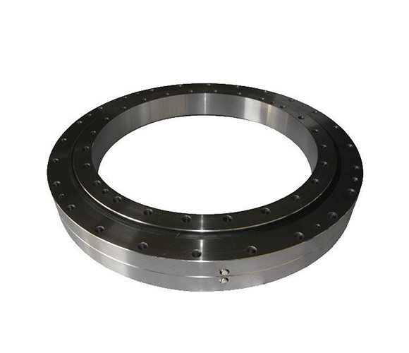 双排球式回转支承具有三个座圈,钢 球和隔离块可直接排入上下滚道,根据受力状况,安排了上下两排直径不同的钢球。这种开式装配非常方便,上下圆弧滚道的承载角都为90°,能承受很大的轴向 力和倾翻力矩。当径向力大于0.1倍的轴向力时滚道须特殊设计。双排球式回转支承的轴向、径向尺寸都比较大,结构紧固。特别适用于要求中等以上直径的塔式 起重机,汽车起重机等装卸机械上。